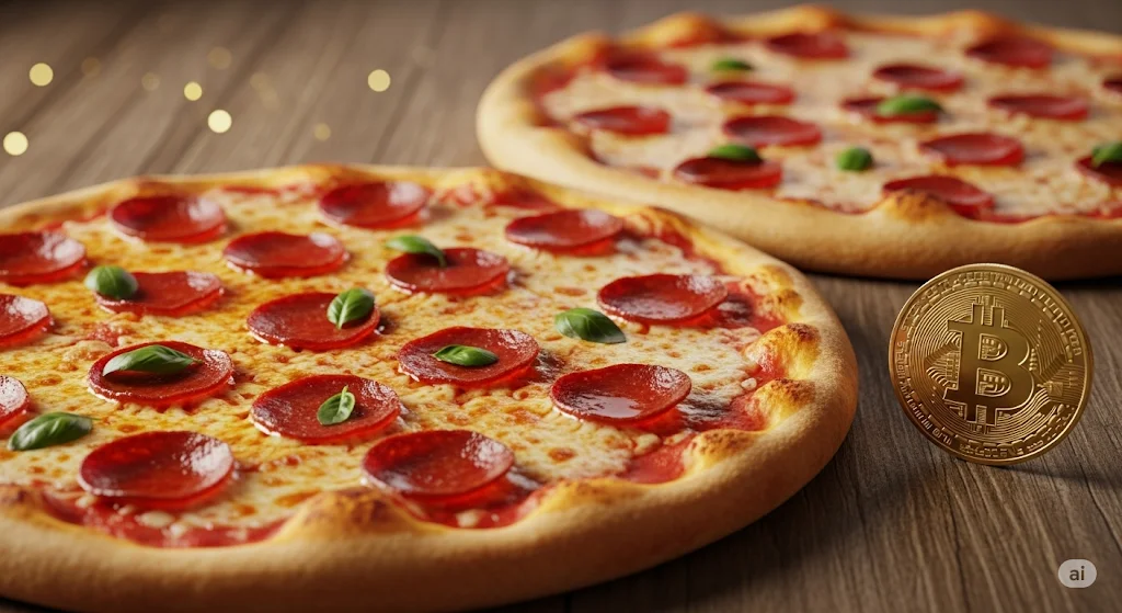 A programmer pays 10,000 BTC for two pizzas. It was the first time Bitcoin was used to buy a physical good.